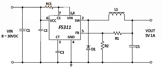 F5311是单片集成电路提供所有的活性功能降压开关式稳压器能够推高至2负载线和负载调节的特点。8 v的输入电压范围宽40 v F5311适合调节权力从各种各样的来源包 括24 v工业用品和汽车电池。提供了一个完整的设计使用最小数量的外部组件。还建立了在可编程软启动输入过流保护、输出短路保护和热关机功能。5V 1A 小体积车充方案