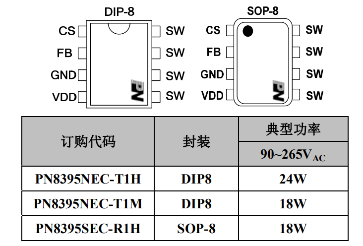 PN8395集成超低待机功耗准谐振原边控制器及650V高雪崩能力智能功率MOSFET,用于高性能、外围元器件精简的充电器、适配器和内置电源。