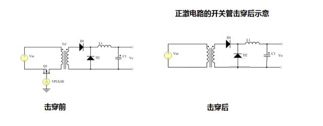 对于正激电路而言,同样开关管击穿短路,对负载而言,只是失去了供电的电源而断电,不会对负载本身造成其它影响。