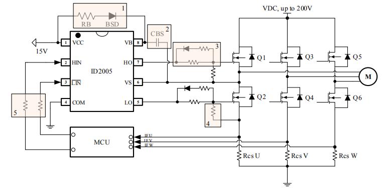 ID2005高低侧半桥驱动芯片具有大电流输出能力,该浮动通道可用于驱动高侧配置的N沟道功率MOSFET,工作电压高达200V。输入信号可以兼容CMOS和LSTTL信号,逻辑输入电平低至3.3V。