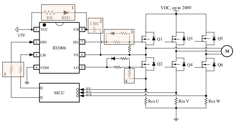 ID2006芯片是一款基于P衬底、P外延工艺的高压、高速功率MOSFET和IGBT驱动芯片,具有独立的高低边参考输出通道。该浮动通道可用于驱动高侧配置的N沟道功率MOSFET,工作电压高达200V。输入信号可以兼容CMOS和LSTTL信号,逻辑输入电平低至33V。具有大电流输出能力。