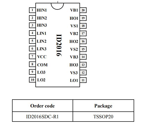 ID2016 200V三相栅极驱动芯片采用TSSOP20封装,5-20V 宽范围工作电压范围,输入可兼容 3.3V, 5V 逻辑工作电平,1A/1A 拉灌电流能力,可兼容替换TI/德州仪器DRV8300NPWR/DRV8300DPWR,ON/安森美FAN7888MX,典型应用于电动车、低压风机和泵电路,具有防直通保护和高低侧全通道欠压保护。