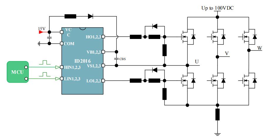 ID2016三相栅极驱动芯片是为三相无刷直流电机驱动器应用而设计的门驱动器IC。它能够驱动由六个N沟道功率MOSEFET组成的三个半桥。Driver的高压制成工艺和共模噪声消除技术能够保证芯片在高dv/dt噪声环境下能够正常运行,芯片保护功能包括输入端防有效逻辑电平互锁功能以及VCC和VBS欠压保护功能。