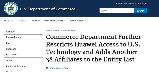 新禁令的目的就是为了堵上华为企图走第三方路线获取高技术芯片的“漏洞”,旨在打击华为对商用芯片的获取,该制裁令立即生效,意味着华为无法采购获得外国公司开发或生产的使用美国技术电子组件。
