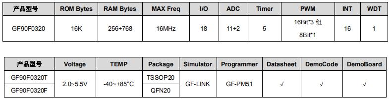 GF90F0320 8位flash型单片机可兼容HC89S003P