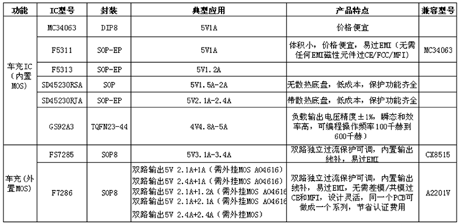电子产品飞速普及的今天,智能手机成了现在很多朋友最依赖的产品之一,所以说出门在外,三神器绝不能少——钱包、钥匙和手机。如果有朋友专职快车、出租车一类工作的话就更加严重。手机这样长时间使用的话,移动电源显然不是一个很好的解决方法,于是车载充电器应运而生,手机没电,能随用随充,方便快捷。立马受到了广大车主的追捧。芯片作为车载充电器的核芯部件,车充芯片对于车载充电器的性能、安全,寿命等要求都是起了至关重要的作用,所以作为生产和销售车充的厂家来说,选对车充方案是很重要的,为此91免费福利网站91免费福利网站电子推出了不同规格和参数的车充方案。