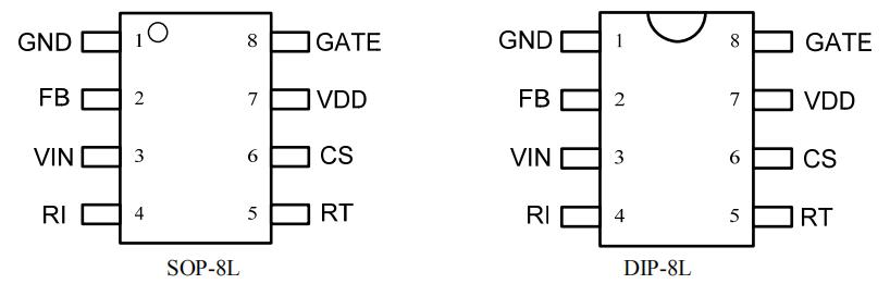 3 VIN 启动引脚。该引脚通过一个大的启动电阻连接到整流后的交流输入端。这个引脚的作用主要是快速启动和用于 OCP 补偿的线性电压检测。